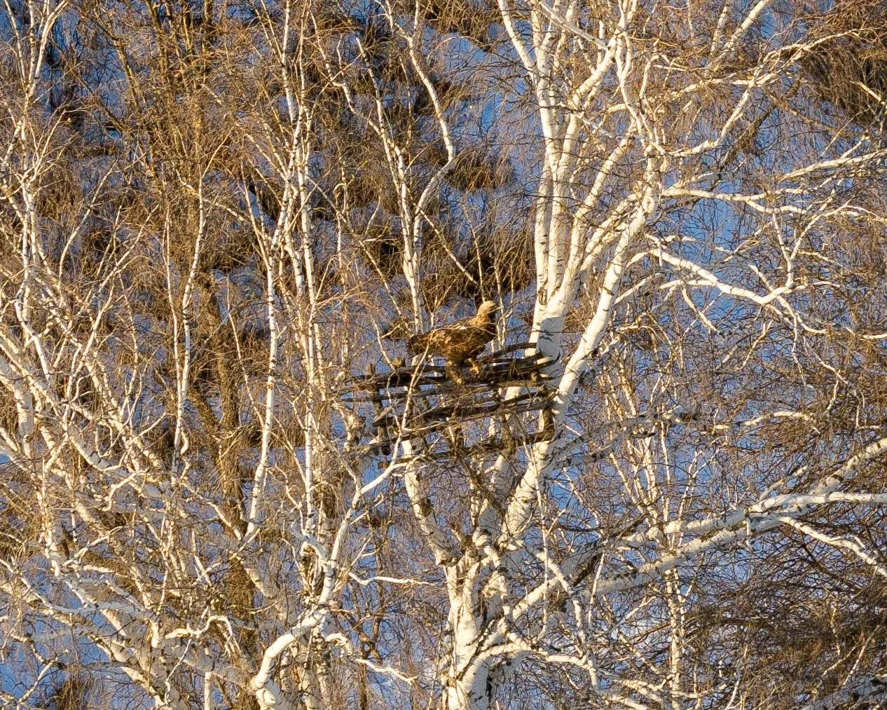 Конструкцию для редких птиц биологи установили еще в 2012 году, однако за тринадцать лет она так и не была заселена. К нынешнему сезону от сооружения остался практически только каркас, и вот на ней появился первый пернатый гость.