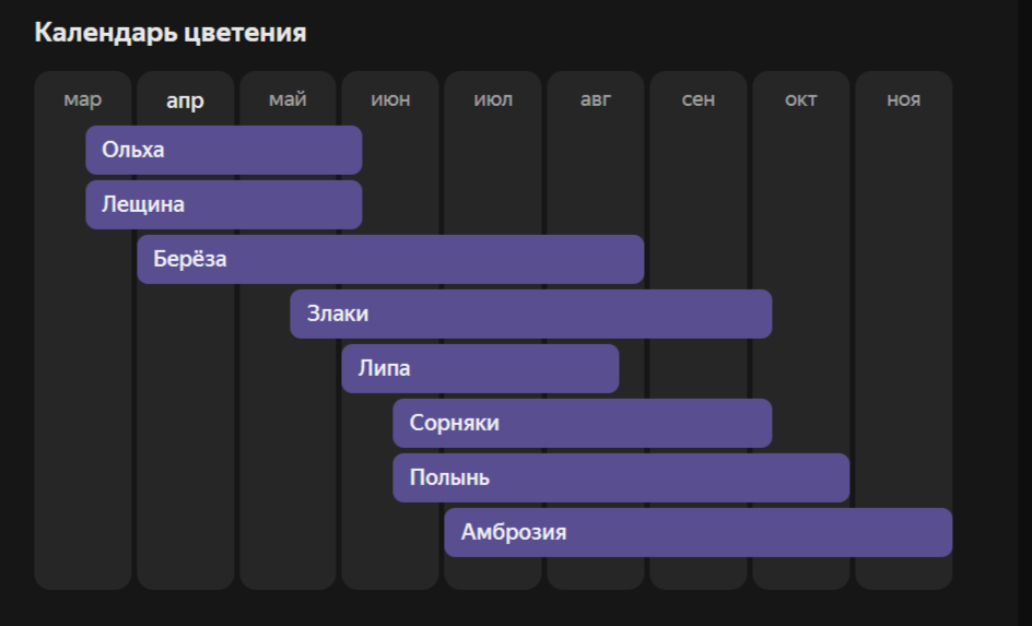 Обновлённая карта аллергенов показывает зоны высокой активности.