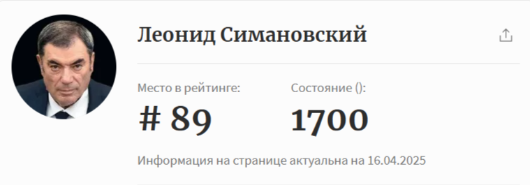 Динамика состояния Симановского за последние три года выглядит так: в 2023 году Forbes оценивал его в 1,5 миллиарда долларов, в 2024 и 2025 годах — в 1,6 миллиарда, а теперь, в 2026-м, — в 1,7 миллиарда. Ежегодный прирост составляет примерно 100 миллионов долларов.