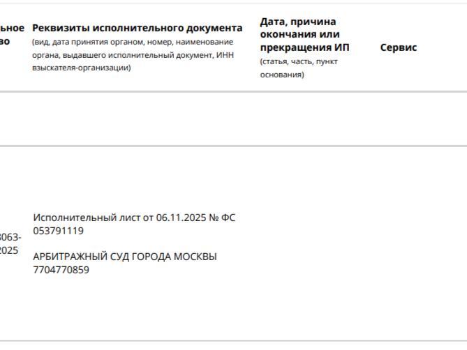 Исполнительный лист обнародован на официальном сайте ФССП.