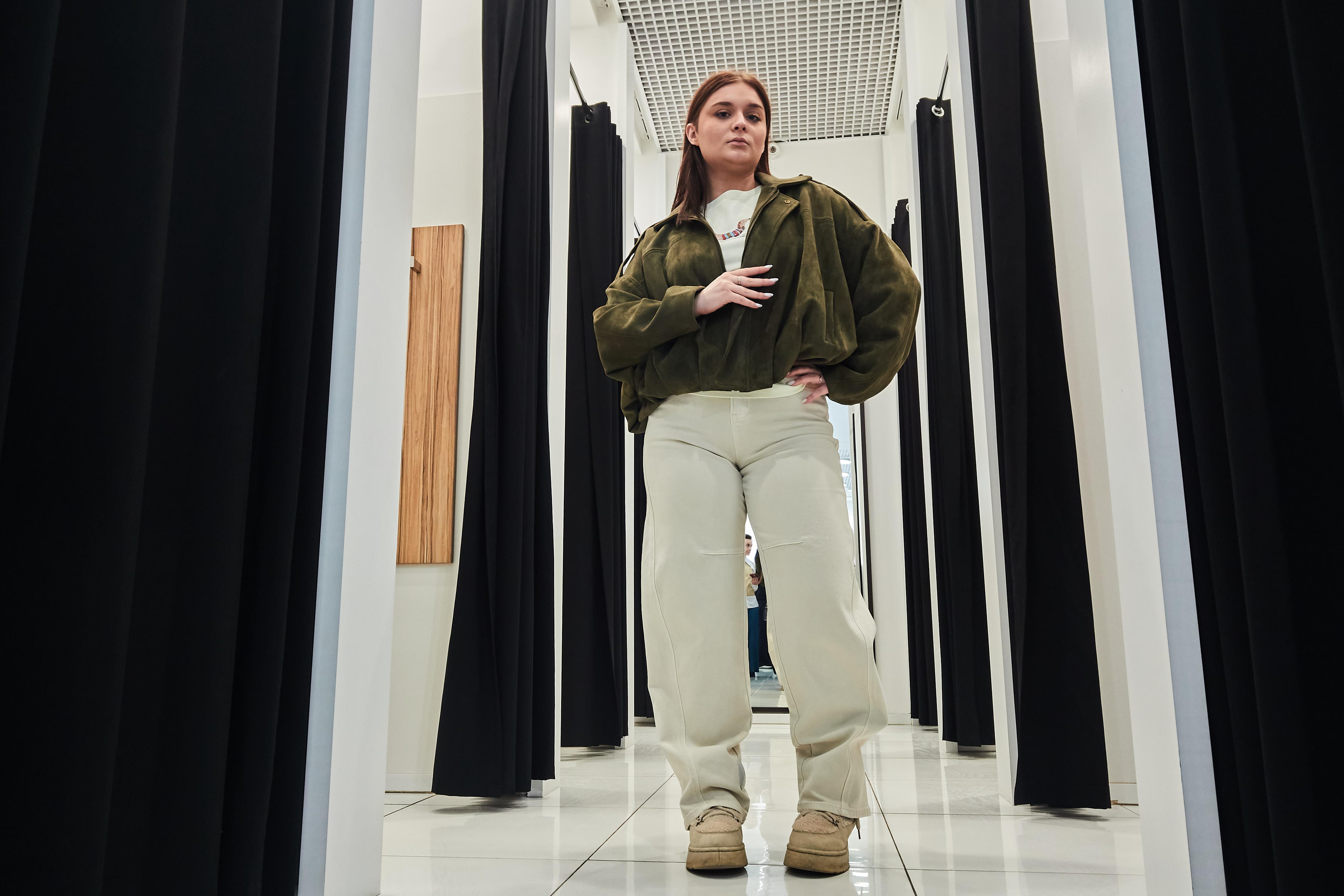 - Объёмную куртку или бомбер с аналогичным силуэтом, присборенным в нижней части.