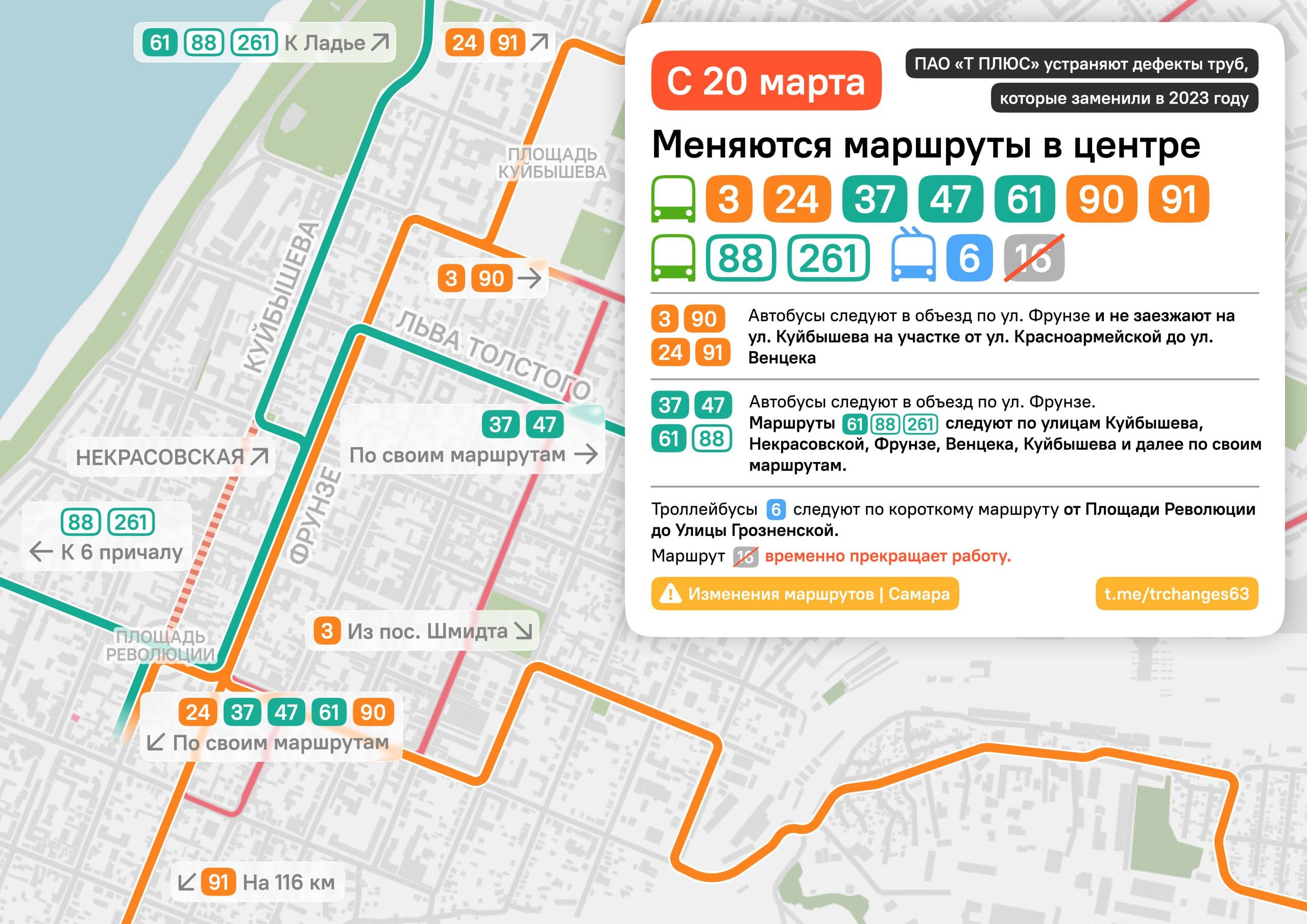 В Самаре изменят маршруты троллейбусов и автобусов
